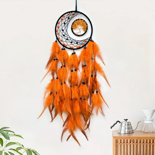 Caça Sonhos Lua com Árvore da Vida - Laranja