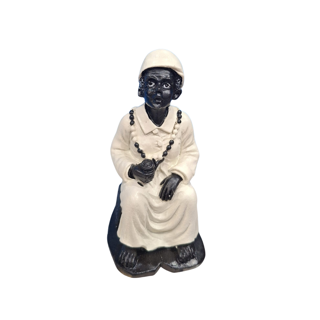 Imagem de Preta Velha 10 cm, guia espiritual que oferece cura, proteção e amor.